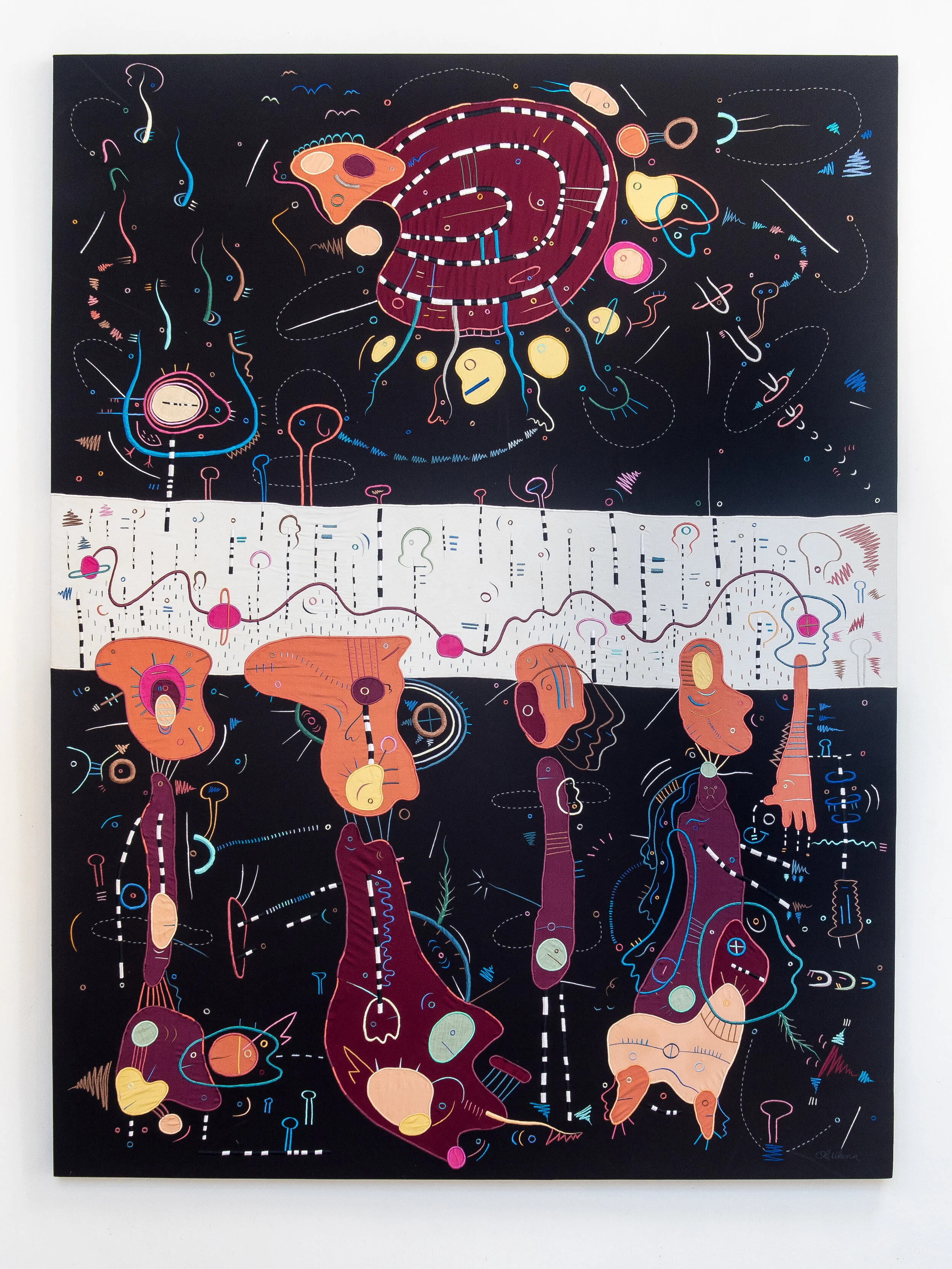 “What I see is not as important to what you feel and imagine when you look at a piece. In fact I want you to completely forget what you think I see and approach the piece as if your own subconscious mind sends you a message and it’s up to you to give it meaning. One day you might see monsters and at another day cookies, it might feel like it’s under a microscope or in a far away galaxy. This is what my work is about, it changes with you so stop asking me what I paint. I can tell you from what inner space I create from but I am also just discovering potential narratives just as you are.